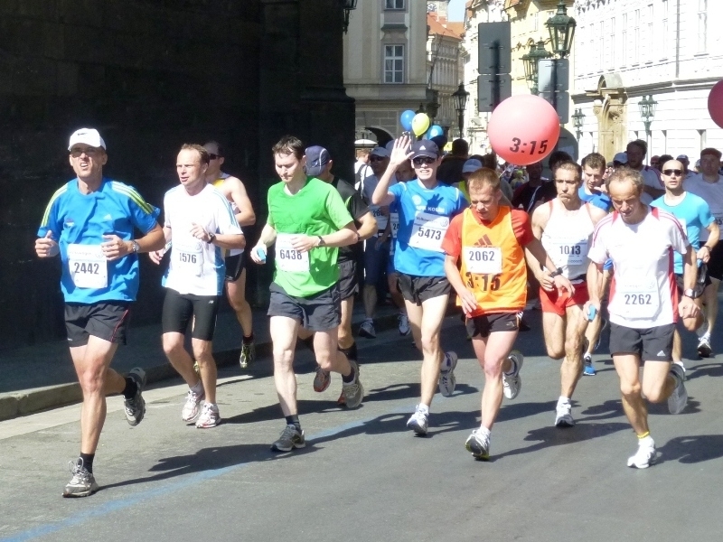 Po startu se vydal dlouhý „štrůdl" kupředu a hodně dlouho mu trvalo, než se nechal rozkrájet. Dílem za to mohou štafety, které jsou sice sympatickým počinem, ale v některých pasážích vytváří na trati značný kapacitní tlak. Vodiči Martin Heřmánek a Jan Mareček nasadili zpočátku poměrně svižné tempo a vymazali brzo dvouminutovou ztrátu ze startu. Příjemným překvapením byla komunikace mezi běžci naší skupiny; vzduchem létal jeden fórek za druhým, což vydrželo zhruba až do 20. kilometru. Na zhruba 12. kilometru v Pařížské jsem doběhl Zdeňka a prohodili jsme pár slov. Musím říct, že „kulisy“, kolem kterých se běželo, jsem si opravdu užíval a je škoda, že se pražský půlmaraton nepodívá taky trochu víc do centra. Skvělé bylo také pozorovat nadšené běžecké party z jižní Evropy, které byly na trati hodně slyšet.
