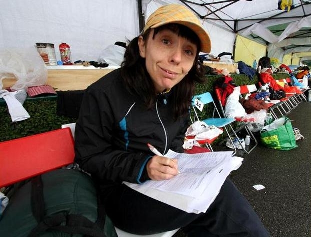 Hlavní důvod našeho brzkého příjezdu je, že jsme se rozhodli dát pro dnešek k dispozici svá těla vědě. Nadšeně jsme kývli na odběr krve a moči před a po závodě. Již méně nadšeně se nyní necháváme píchat do rukou a absolvujeme měření procentuálního zastoupení tuku a já nevím čeho všeho ještě. Navíc si ještě v průběhu závodu máme zapisovat vše, co jíme a pijeme. A měřit, kolik vymočíme. No to snad upadli. Ale slibujeme, že si to vše budeme pamatovat a údaje dodatečně doplníme.