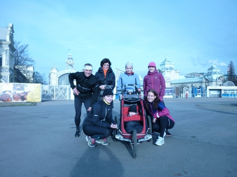Z metru už jsem postupně odstříhala jednotlivé dílečky a JE TO TADY! První neoficiální setkání gazelek! Už od rána mi je do zpěvu, šíleně se těším! Většina gazelek tráví svátky na horách, případně na návštěvách u svých nejbližších, vypadá to tedy jen na poměrně komorní setkání. Ale to vůbec nevadí. S holkama docela slušně řádíme virtuálně na FB, už to mě výrazně naplňuje. Dopoledne ještě upéct šátečky, uvařit čajíky do termosek a vystoupení může začít. Terezka nás trošku zdrží, protože se chce jako tradičně honit namísto oblékání. Nakonec se nám ji podaří odchytit, naložíme kočár, naskáčeme do auta a frčíme směr Výstaviště. Cestou zpíváme a tleskáme, hlavní dirigent je pochopitelně Terezka. Na místo dorážíme pár minut před domluveným setkáním. Péťa rychle skládá kočár, Terezku nasoukáme do fusaku, naložíme jídlo a vrchní části oděvů a vydáváme se svižným poklusem napříč Výstavištěm. Dobíháme ve chvíli, kdy přichází i Danča s Milošem. Na místě už čekají abecedně Miri, Terka a Víťa. Srdečně se vítáme nejen s PIMkami, ale také s Dančou a Milošem. Oba jsou neskutečně vřelí a usměvaví. Danča je nádherná ženská, snem a inspirací pro mnohé z nás. Čiší z ní nesmírná síla, energie, dobrota. Blýskneme pár společných a už se vydáváme na PRVNÍ GAZELÍ „BĚH“.