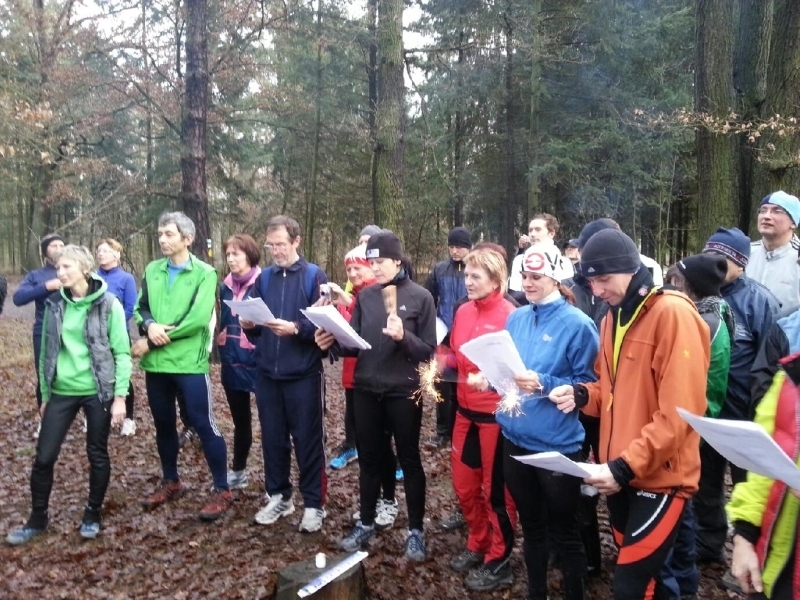 Vybíháme do Štědroranní tmy. Na první křižovatce zmateme mladíka, který se lehce pod vlivem potácí ulicí. Běžíme k IKEMu, pak k jezeru Labuť, zde potkáváme Milana Hlavu. Přecházíme do chůze, povídáme o počasí, stromečku, Milan vzpomíná na různé běžecké akce. Štědrovečerního běhu se účastní po 9., my jsme nováčci. Ráno jsem vypila hrnek čaje, a tak nutně potřebuji. Když už je situace urgent, zabíhám za stromky. A co čert nechtěl, nemůžu rozvázat kaťata, nejdou stáhnout ani zavázané. Tak poskakuji na místě a bojuji s uzlem. Vyhrávám, hurááááá... Po pár vteřinách je ze mě nový člověk. Dobíhám kluky, před 8. hodinou dorážíme k Velkému altánu na místo startu. Sešlo se nás rekordních 155, teplota údajně také rekordní, kolem 10 st. nad nulou. Chvilkou ticha zavzpomínáme na Iva Domanského a pak už se rozebíháme na 5,5 km dlouhou trať. Instrukce zní jasně: „Užijte si to, povídejte a vyprávějte si, závodění si nechte na jindy". Líbí se mi ten přístup, a tak si povídáme, užíváme, bavíme se... Společnost nám dělají Evžen se Sárou, zvlášť Sára se Terezce líbí. Po doběhu se shromáždíme u stromečku, pějeme koledy, Evžen doprovází na kytaru a Petra na housle. Krátce po deváté hodině ranní se rozcházíme a já mám pocit, že už musí být odpoledne. Tolik zážitků... Doma si dáváme teplou polévku a užíváme si atmosféry Vánoc. Žádný shon, žádný přemrštěný úklid, prostě klídek...