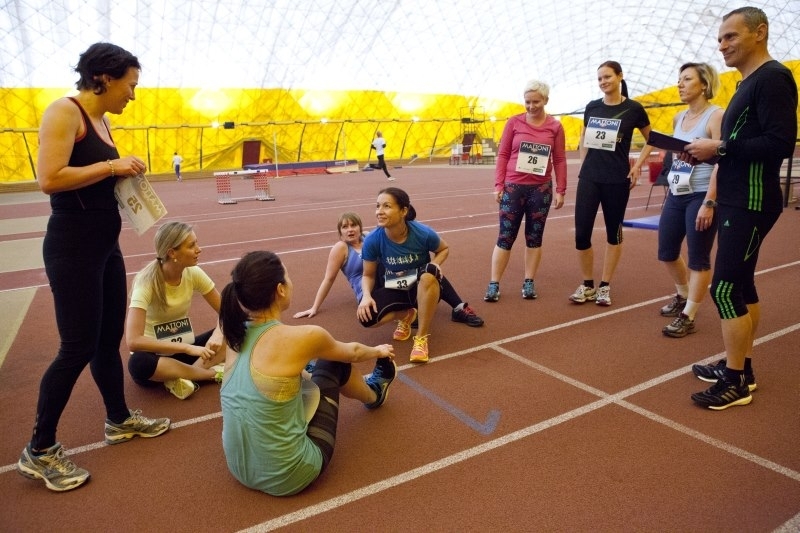 V hale už nás očekávají mamča Marťa s Milošem, dvě holčiny z PIMu, 2 novináři, fotograf. Rozklusáváme se 4 kolečka, pak zamáváme rukama a nohama, fasujeme čísla, stavíme se na startovní čáru, zapózujeme fotografovi a vydáváme se na očekávanou/obávanou 12minutovku. Dalo mi to 2990 m. Zdá se mi to moc, v jednu chvíli dokonce podezřívám Miloše, že mi přidal kolečko. Pravda je, že nejistota je ve mně stále. Nu což, Cooper na konci to ukáže. Je fajn, že po doběhu dostáváme vodu, v hale je suchý vzduch, jazyk se lepí na patro a všechny tak nějak poštěkáváme. Víťa bezprostředně po doběhu dává rozhovor novináři, my se protahujeme a ještě si klusneme 2 kolečka. Pak se vydáváme do sprch, šťastné, že to máme za sebou.