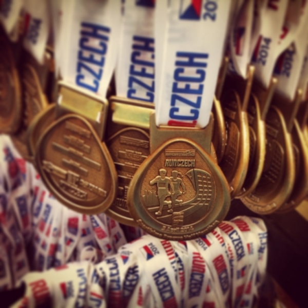 Komentátor pln euforie celou atmosféru okořenil, když s neskutečným nadšením v hlase informoval, že první běžec si pravděpodobně dá osobák. Přiblížila jsem se s Víťou více k cíli a netrpělivě jsem vyčkávala, kdy ho uvidím přibíhat. Sledovala jsem čas a po celém těle jsem měla husí kůži, jako bych snad běžela sama. Když pak proběhl cílem, zalila mě obrovská vlna radosti, štěstí, nadšení, nemohla jsem se přestat usmívat. A pak dobíhal další a další a to byla naprostá pecka! Celá ta atmosféra mě naprosto pohltila. Přesunula jsem se na místo předávání medailí a po několika minutách ke mně dobíhali emocí plní běžci. Nemohla jsem se přestat smát a předávala jsem jim zasloužené medaile. Že jsem se objala se známými mi přišlo automatické, ale když mě objal někdo zcela cizí, nemohla jsem mu obětí neopětovat. A bylo to od všech těch běžců tak spontánní a neskutečně milé. Nešlo se na ně nesmát, nepoplácat je po zádech, nesmeknout onen klobouk. Tolik emocí najednou, tolik šťastných a hrdých lidí... Těžko to celé vyprávět a popisovat, neboť se to nedá vylíčit stejně, jako není možné popsat pocity z pozice běžce. Na celé té běžecké akci je však krásné, že pokud děláte něco, co milujete a je to alespoň trochu vaším smyslem života, můžete to naplno prožívat i z té druhé strany a to jako divák:-).