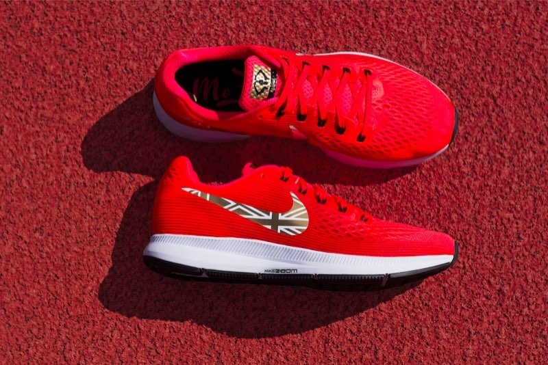 K posledním dvěma závodům si Mo Farah vybral svůj oblíbený běžecký model Nike Pegasus. Speciální úprava Pegasus 34 k MS nese Nike Swoosh s prvky britské vlajky, jeho zobrazení a podpis na jazyku.