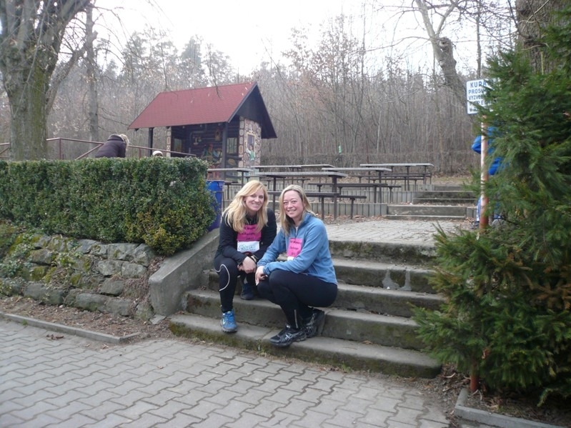 Těsně před závodem ladíme cedulky s nápisy naší PIM výzvy, některé to zaujme, ptají se a vyjádřují nám podporu. Zbývá cca 15 minut, jdeme se rozběhat. Ze Stáni cítím strach, přizná se mi, že je to její první závodní desítka. V duchu si říkám, že si chudák vybrala docela náročnou desítku, tohle žádná silniční rovinka nebude! Ale uklidním ji, že nám nejde o čas, ale proběhnout se po lese, doběhnout do cíle, splnit si sen a dát si po závodě v euforii čaj. A že na ní v cíli určitě počkám. Tak vybíháme.